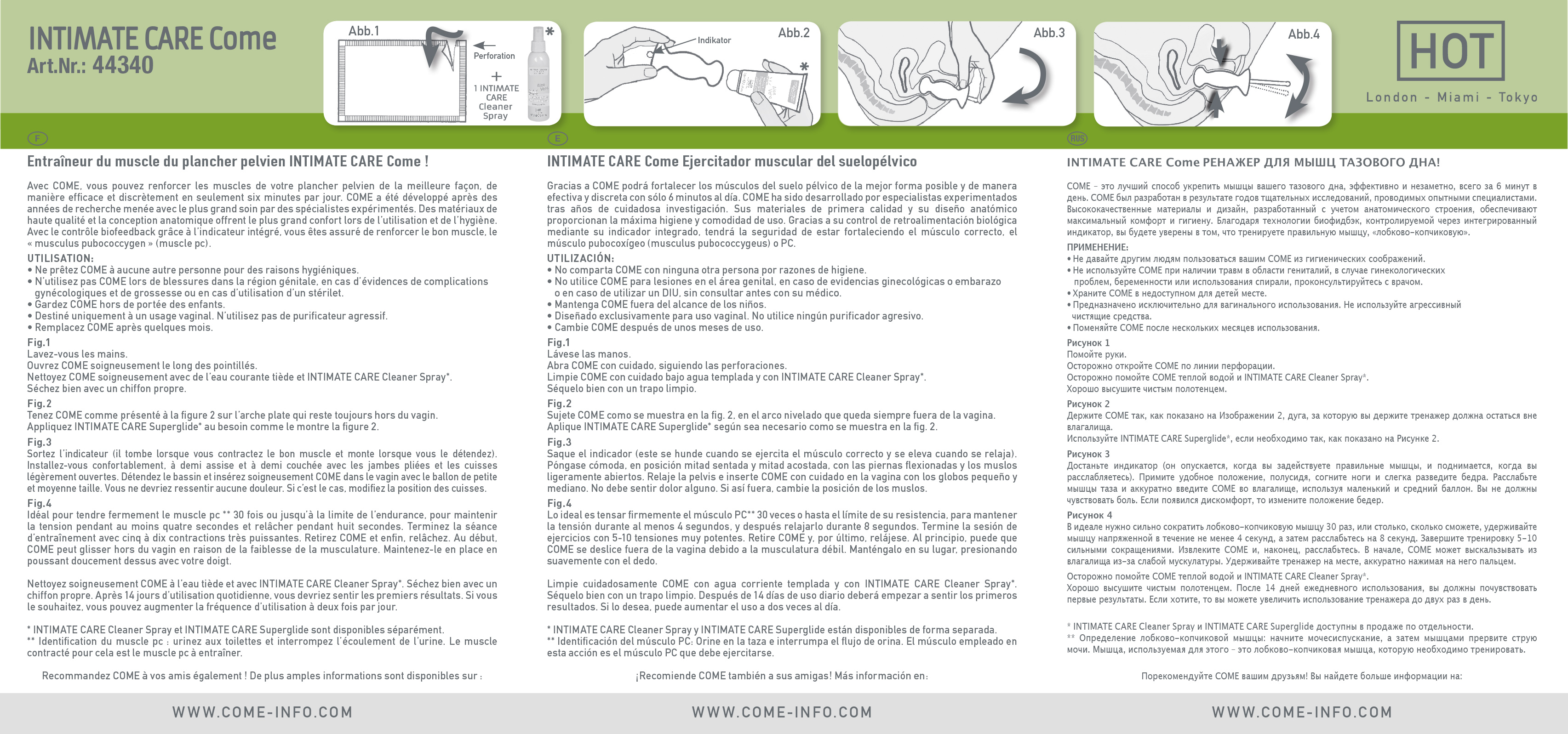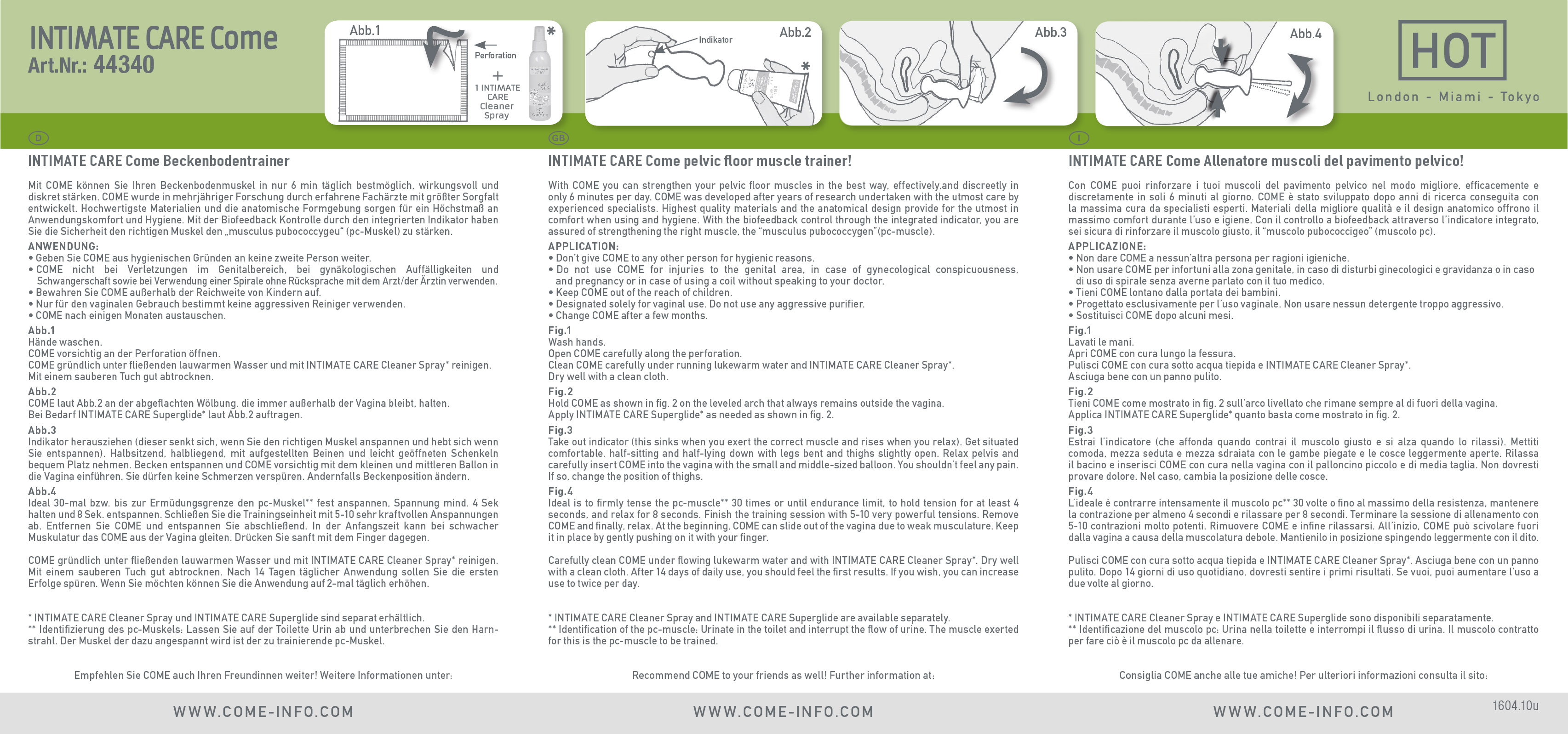 COME is as simple to use as a tampon. It has been scientifically proven that a strengthened pelvic musculature can aid in alleviating urinary incontinence, posture problems, discomfort experienced after giving birth and can maximize the possiblity of achieving an orgasm.